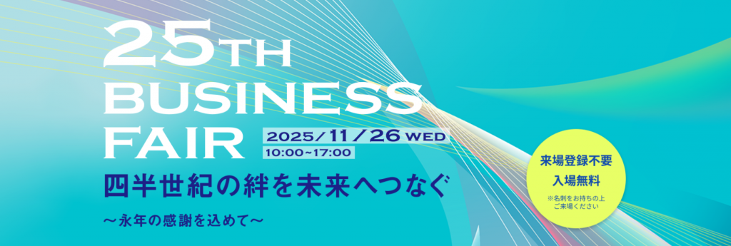株式会社鬼塚硝子は、2024年11月26日(水)に新宿住友ビル 三角広場にて開催されます「第25回 西武信用金庫 ビジネスフェア」に出展いたします。